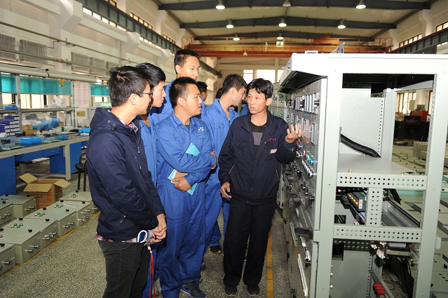 在周二做完早操,船舶公司的副總經理帶我們來到車間。在這個車間里,我看到了一套完整的駕控臺,甚是震驚,因為在學校一直學習的是理論知識,偶爾在書本上電腦上看見駕控臺的圖片,如今一套完整的駕控臺在我面前,讓一個從小擁有船長夢的孩子多么歡喜。上午,副總耐心的給我們講解駕控臺的每一個零件的功能和操作,我聽得仔仔細細,恨不得將每一個零件銘記于心。在接下來的幾天,部長師傅讓我們認識了很多公司生產的零件。由于我們才接觸最基本的專業(yè)課,師傅講的很多我們都不太懂,師傅都細心地給我們解釋,在校外也能有這么負責的老師進行細心輔導,真的感覺我們實在是幸運了。特別是當知道老師為了上午給我們講課,每天晚上都得加班把當天的工作給完成,驚嘆之余,我更多的是