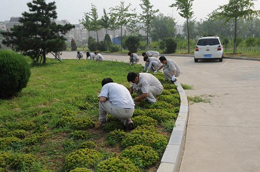 會后,一場黨員帶頭、員工共同參與的集體除草活動熱火朝天地開展起來。大家有的用手拔、用的用鐮刀割、有的用袋裝、用的用車推,忙的不亦樂乎。快者幫助慢者,年輕者幫助年長者,大家一邊勞動,一邊互相問候,其樂融融。表面的雜草連根拔起,死角區(qū)域進(jìn)行了二次清除。烈日炎炎下,盡管很多人的臉上流下了晶瑩的汗滴,但他們依然在繼續(xù),沒有停歇。功夫不負(fù)有心人,經(jīng)過2個小時的辛勤勞動,責(zé)任區(qū)域內(nèi)的雜草、雜物被徹底清除。當(dāng)大家回望整潔有序的草坪時,心中無比喜悅。