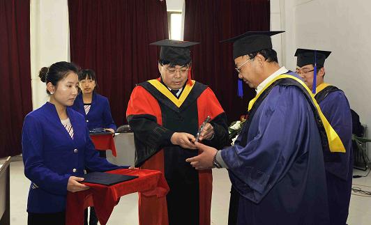 儀式在激情洋溢的樂曲中開始。首先大連海事大學信息科學技術學院自動化系主任李暉宣讀首批工程碩士名單。獲得大連海事大學首批工程碩士名單如下:北方航海公司王洪余、邱琦、范世偉、李忠曄、王德利、宿利楠、李海洋、王曉紅、李娜、儀表公司李鋼、海天科技公司黃帥。每一位畢業(yè)生聽到自己的名字時,都沉浸在金榜題名的幸福之中。集團團委書記黃亮專門為畢業(yè)生們發(fā)來賀信,并希望集團青年員工以他們?yōu)榘駱?,不斷加強學習,努力提高專業(yè)技能水平,增強責任感和使命感,為給予員工創(chuàng)造良好學習和工作環(huán)境的航星集團做出更大貢獻。緊接著,11名碩士畢業(yè)生身著學士服、頭戴學士帽,在歡快的樂曲聲中,精神抖擻地走上主席臺。大連海事大學信息科學技術學院副院長曹德信、集團黨委書記、董事長劉義為畢業(yè)生撥流蘇,進行學位授予。當工程碩士們從領導手中鄭重地接過學位證書的瞬間,激動與喜悅之情溢于言表,他們向領導們深深鞠躬致謝。曹德信副院長發(fā)表了熱情洋溢的講話。他首先祝賀11名工程碩士順利畢業(yè),并為他們取得的成績感到驕傲,希望他們在工作崗位上能夠始終堅持學習、堅韌不拔、愛崗敬業(yè)、腳踏實地地工作,為航星集團的發(fā)展貢獻自己的力量。同時,曹院長祝愿畢業(yè)生們前程什錦,歡迎?;啬感?纯础?/span>